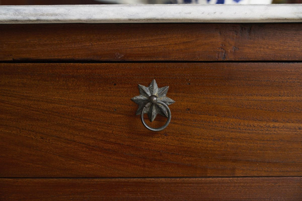 Handmade from dense, old teak wood, this piece is perfect as a grand living room statement or a sophisticated addition to a dining area. Its vast scale and durable marble top make it ideal for displaying curated decorative pieces, or for hosting as a drinks mixing counter.